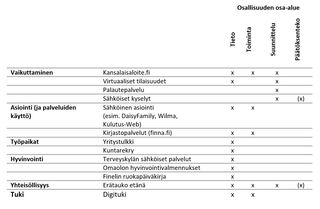Voit siis osallistua kunnan toimintaan myös digitaalisten välineiden ja palveluiden avulla. Kunnan palveluiden sekä tilaisuuksien muuttaminen digitaalisiksi mahdollistaa uudenlaisia, joustavampia tapoja osallistua ajasta tai paikasta riippumattomasti.
