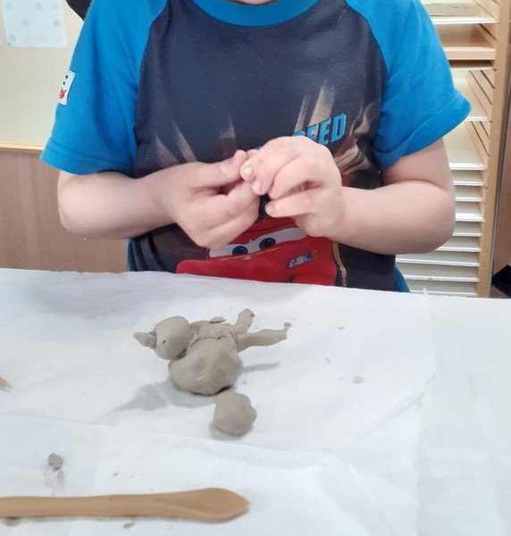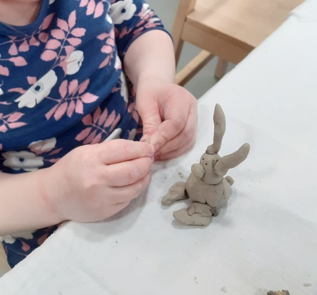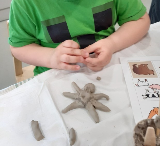 Eino lähestyi idealla kuntaa ja tottakai ajatuksesta innostuttiin heti! Päätettiin, että päiväkodin 4 -5 vuotiaat lapset tekevät Einon kanssa pieniä eläinhahmoja savesta. Hahmojen piti olla n. 5-10 cm korkeita.