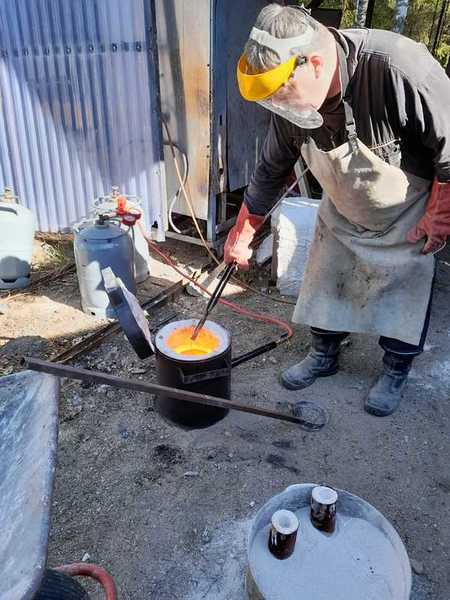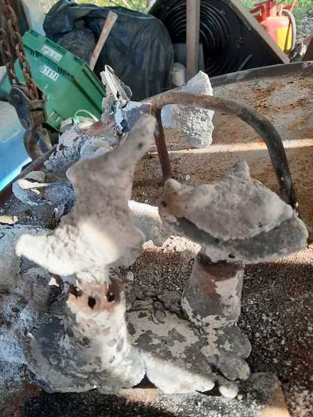 Tämän jälkeen päästiin kuumentamaan pronssia ja valamaan lopulliset veistokset.